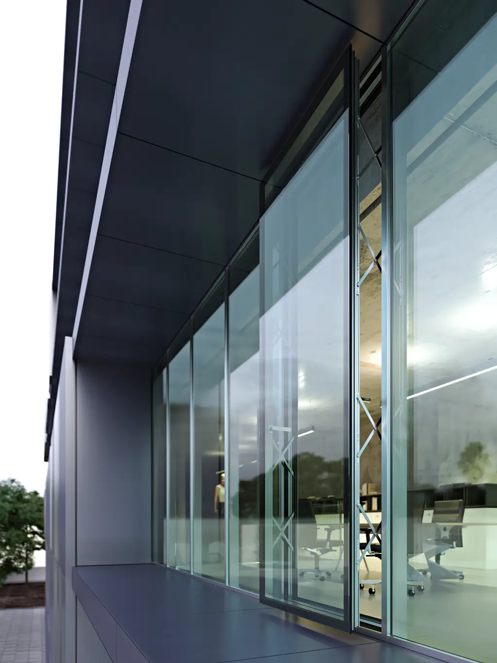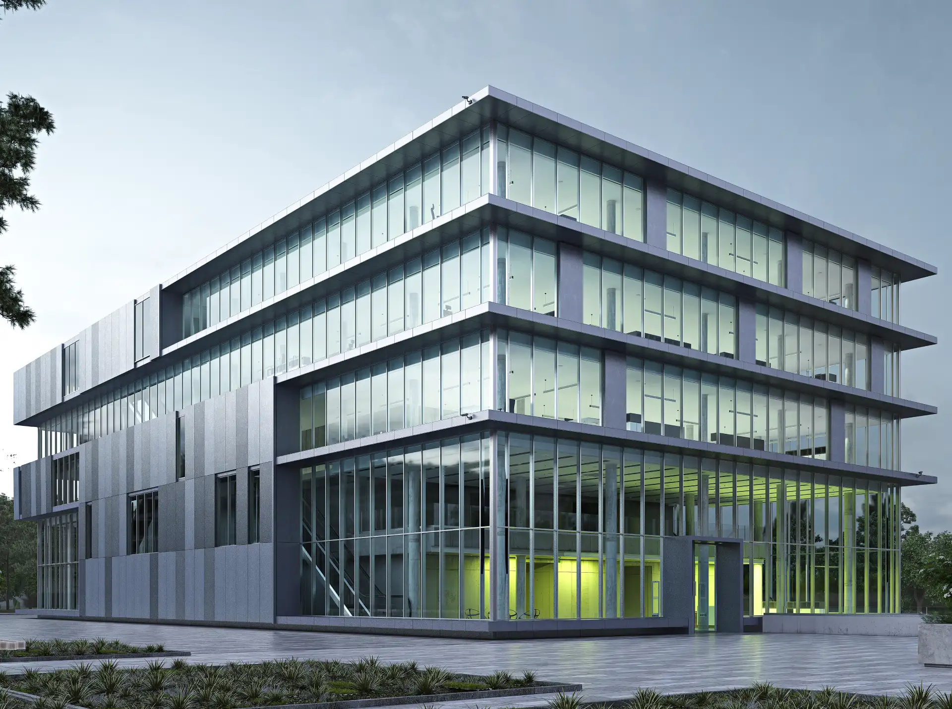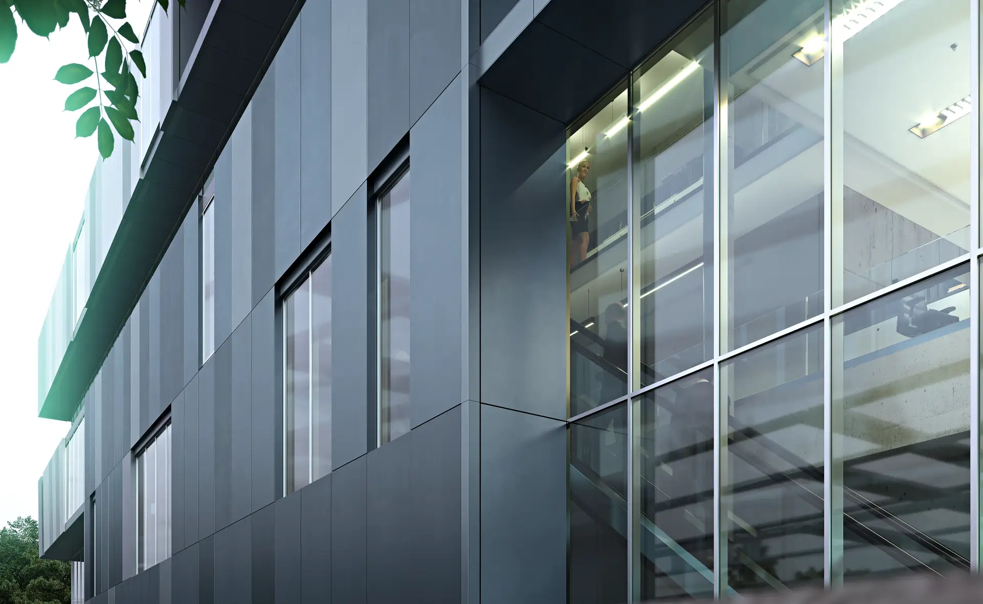 Una facciata continua completamente personalizzabile. Il design unico della facciata si unisce alla bellezza della luce che pervade gli interni e li espone al mondo esterno, per ambienti lavorativi di gran pregio.