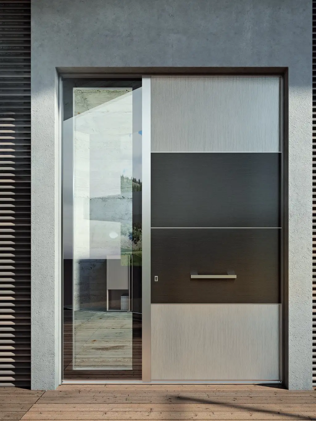 Porte d’ingresso che garantiscono elevati standard di sicurezza e si adattano al design e all’estetica di ogni casa. Affascinante grazie alle forme essenziali, minimali ed eleganti, i portoncini d’ingresso in alluminio Ponzio definiscono un nuovo standard di eccellenza estetica e prestazionale.