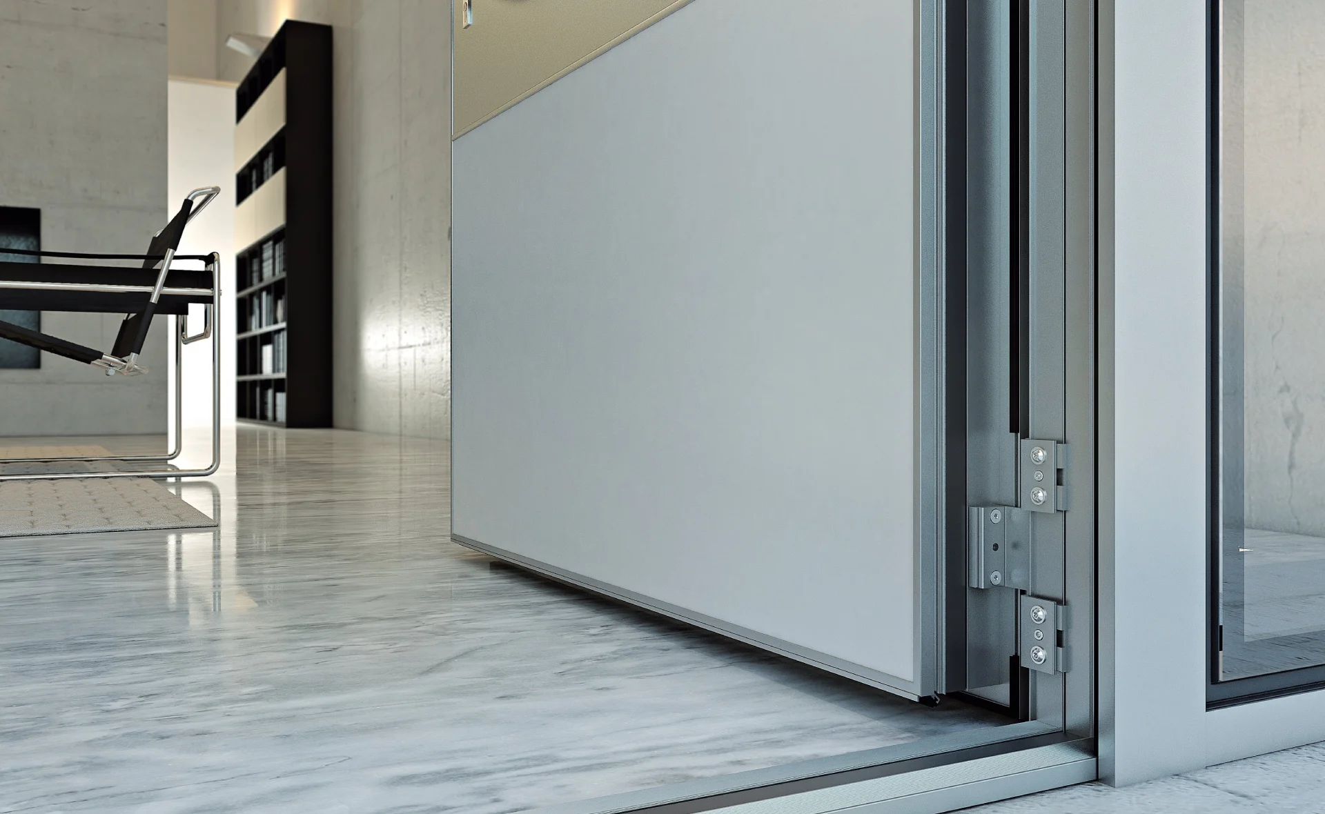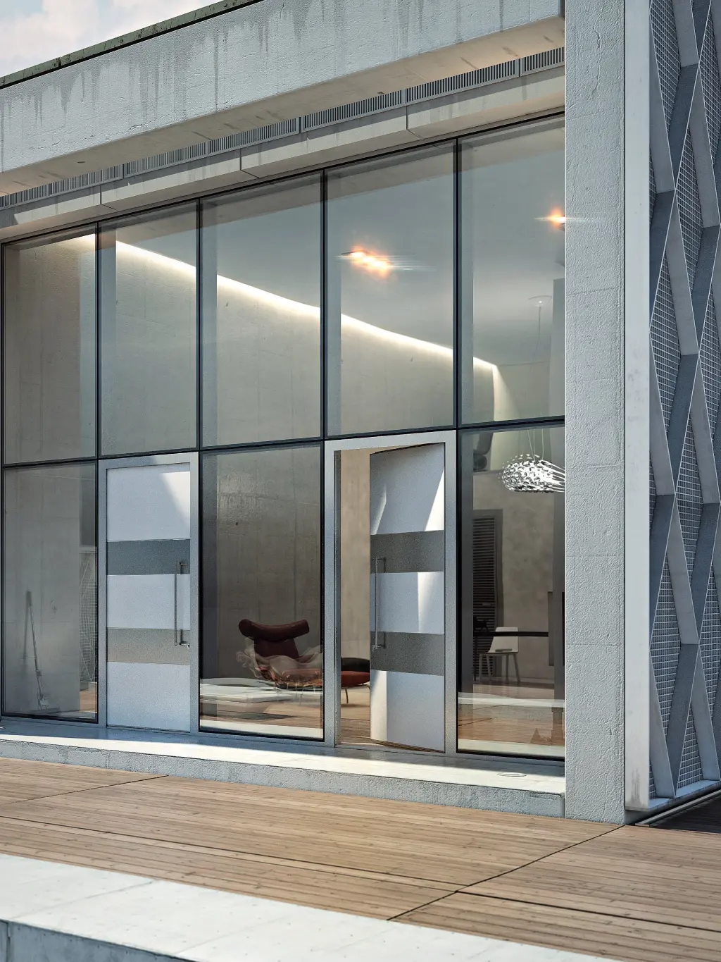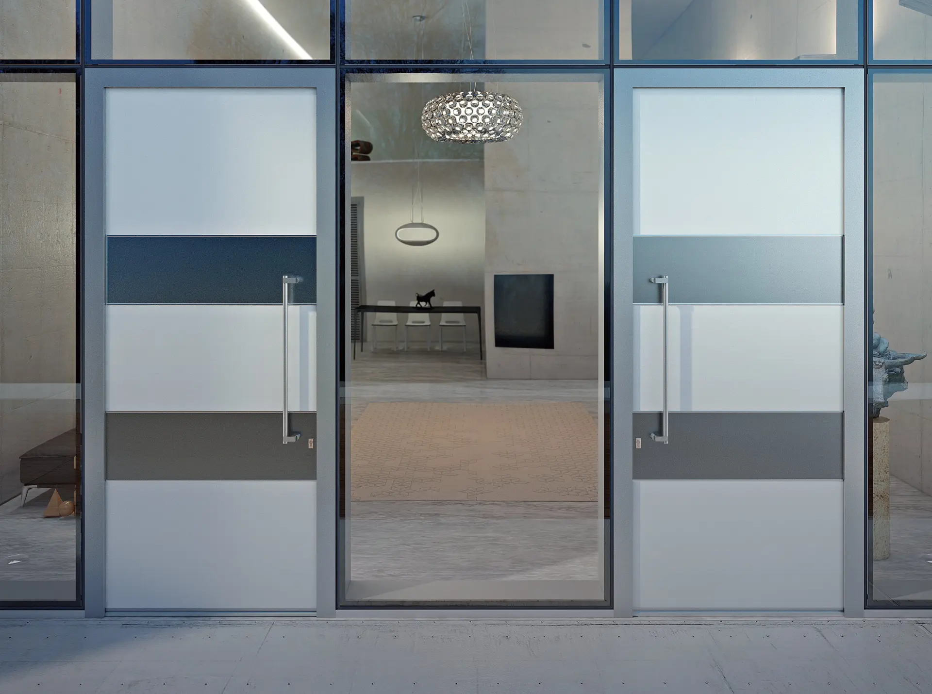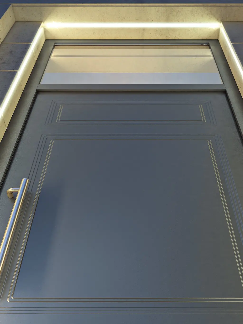 Una porta unica, elaborata e dal design sofisticato che trasforma l’ingresso in un’esperienza piacevole e sicura. I pannelli dal design pulito e minimale sono valorizzati da finiture e inserti in alluminio che mantengono la perfetta planarità della superficie.